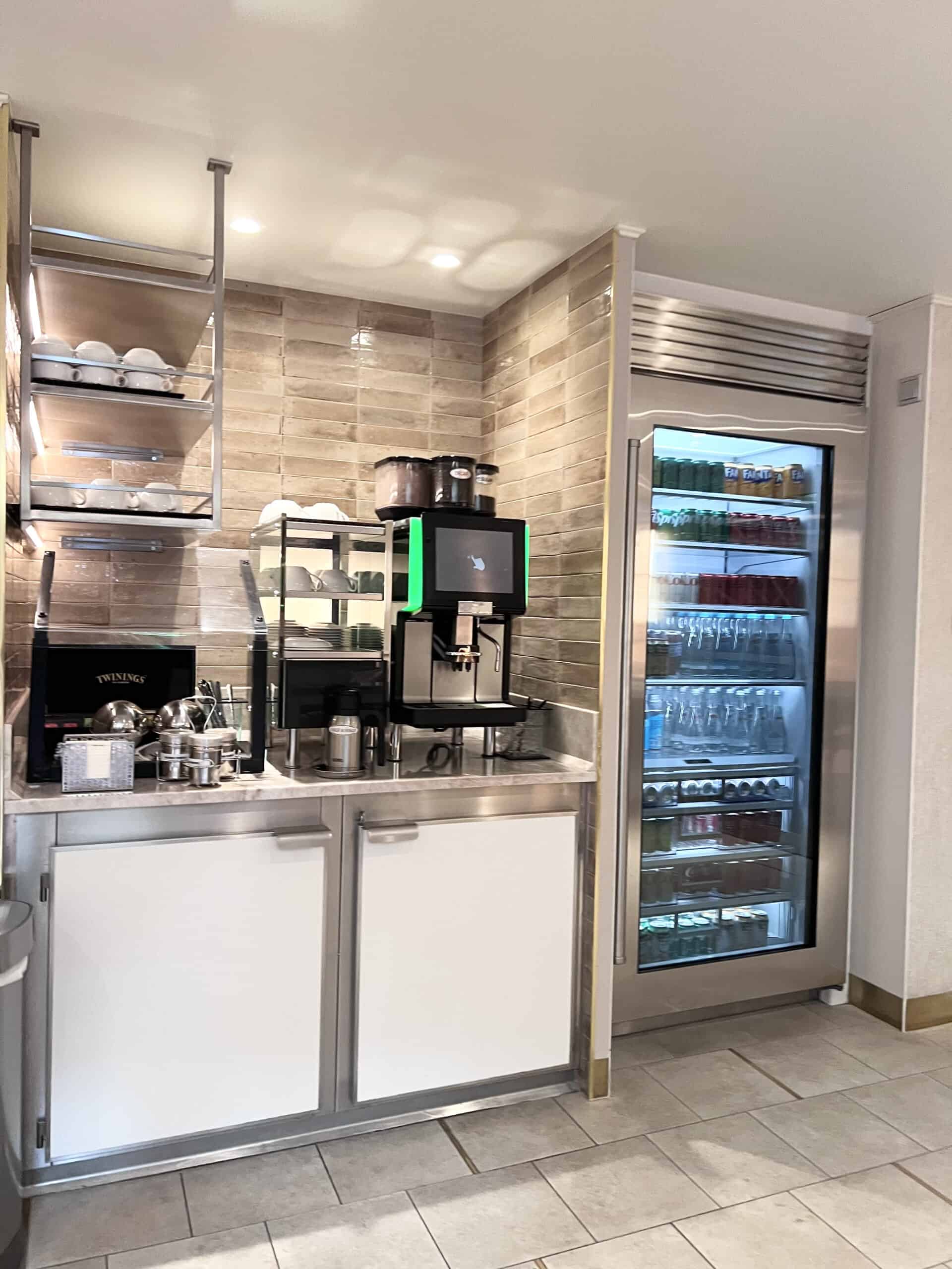The concierge lounge is available to guests from 7AM to 10PM, with a variety of food and drink – hot and cold – items at each service time. Complimentary bottled water, soft drinks, milk and juices are available all day long. Your stateroom attendant will also stock the fridge in your room with your favorites! Specialty coffees, teas and hot chocolate are available throughout the service hours at the touch of a button.