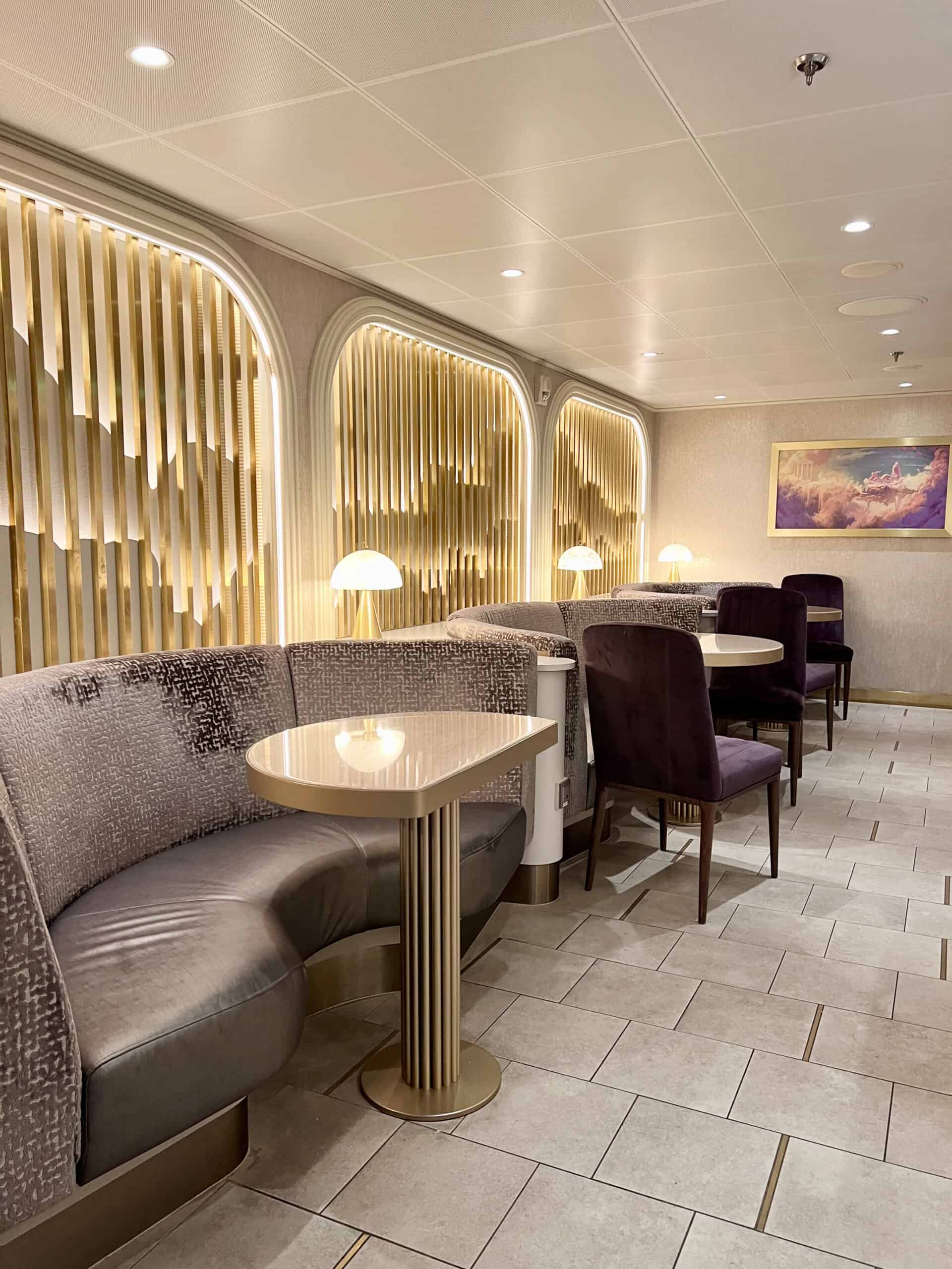This space is especially wonderful for families. One parent can bring children here for snacks and downtime while the other gets ready. Groups traveling together love having a quiet place to gather. And while staterooms onboard are wonderful, it’s nice to be able to stretch out a bit.