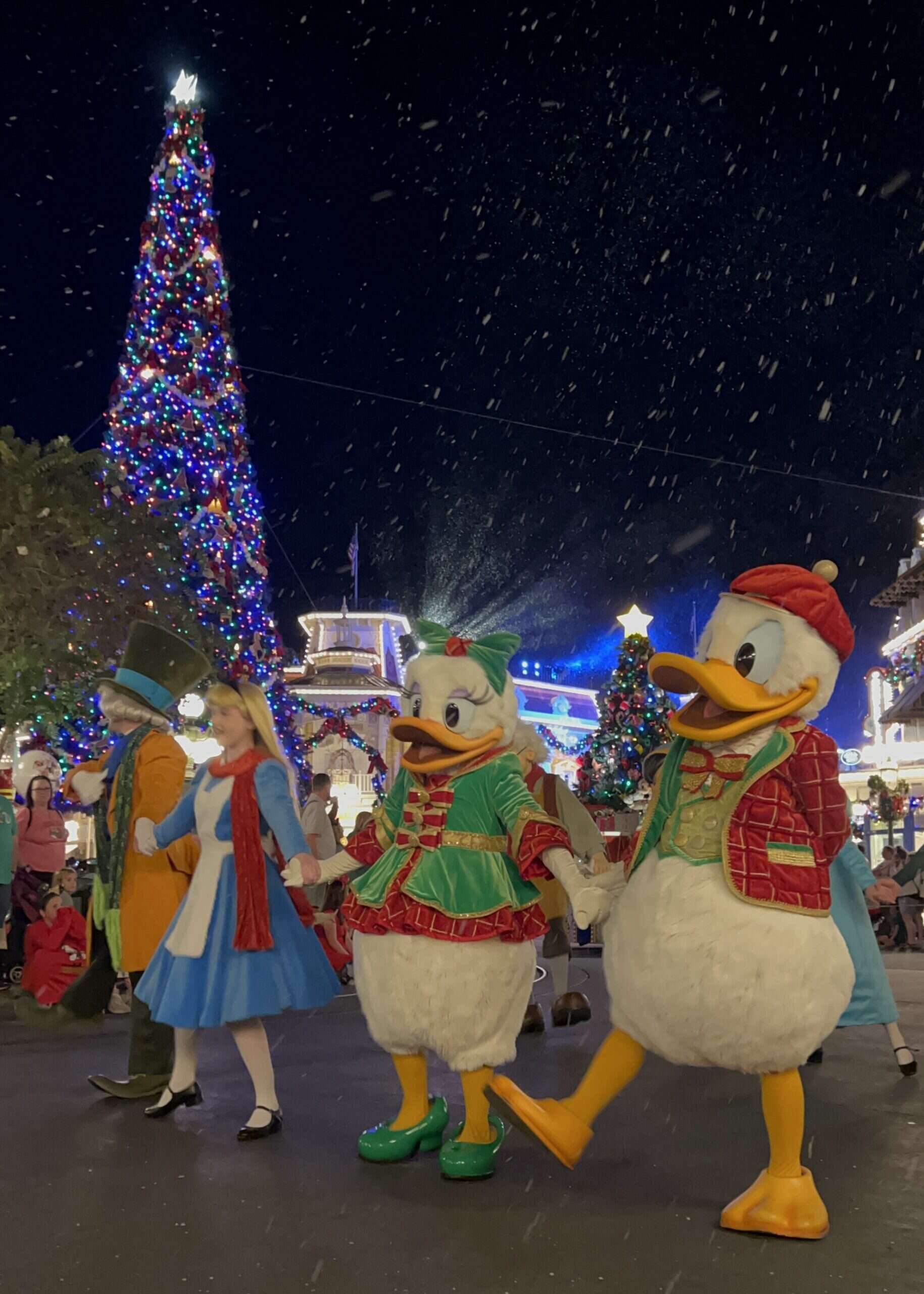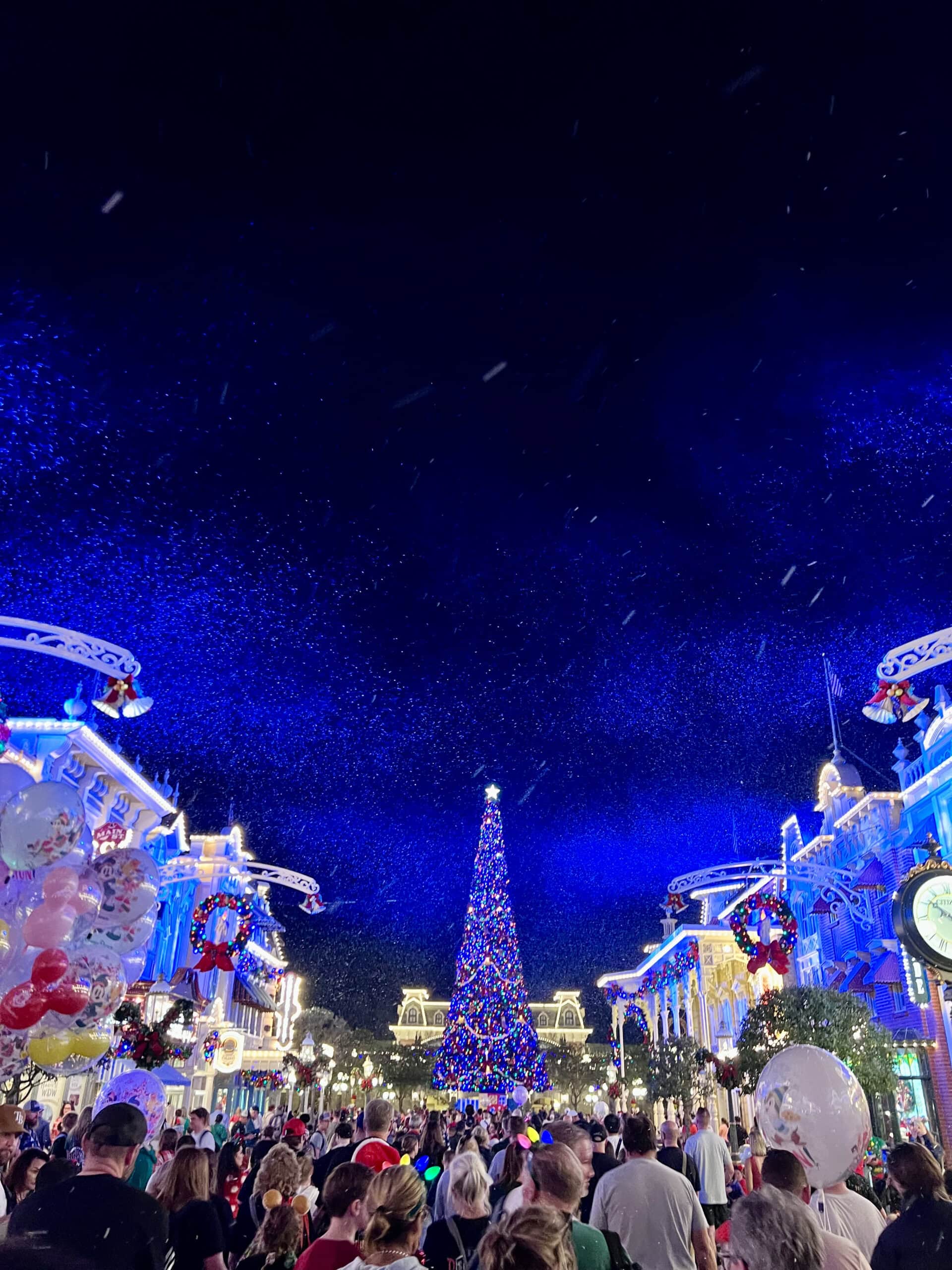 Our Christmas Party night started on Main Street, where the snow was falling, the music was playing and the decorations were sparkling in that way that somehow feels brand new every single year. No matter how many times I’ve seen it, I could cry on the spot. We spent the evening with absolutely no agenda other than to soak up every bit of Very Merry we could…
