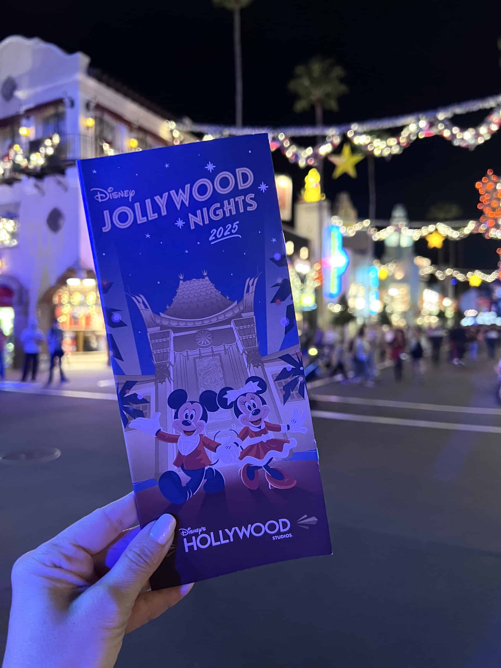 Jollywood Nights is a separately ticketed, after hours holiday event at Disney’s Hollywood Studios, running on select nights from early November through mid-December. In 2025, the party runs from November 8 through December 22 on specific dates, and guests with event tickets can actually enter the park early (usually around 5:30 p.m.) even though the official party hours run from about 7:30 p.m. to 12:30 a.m.