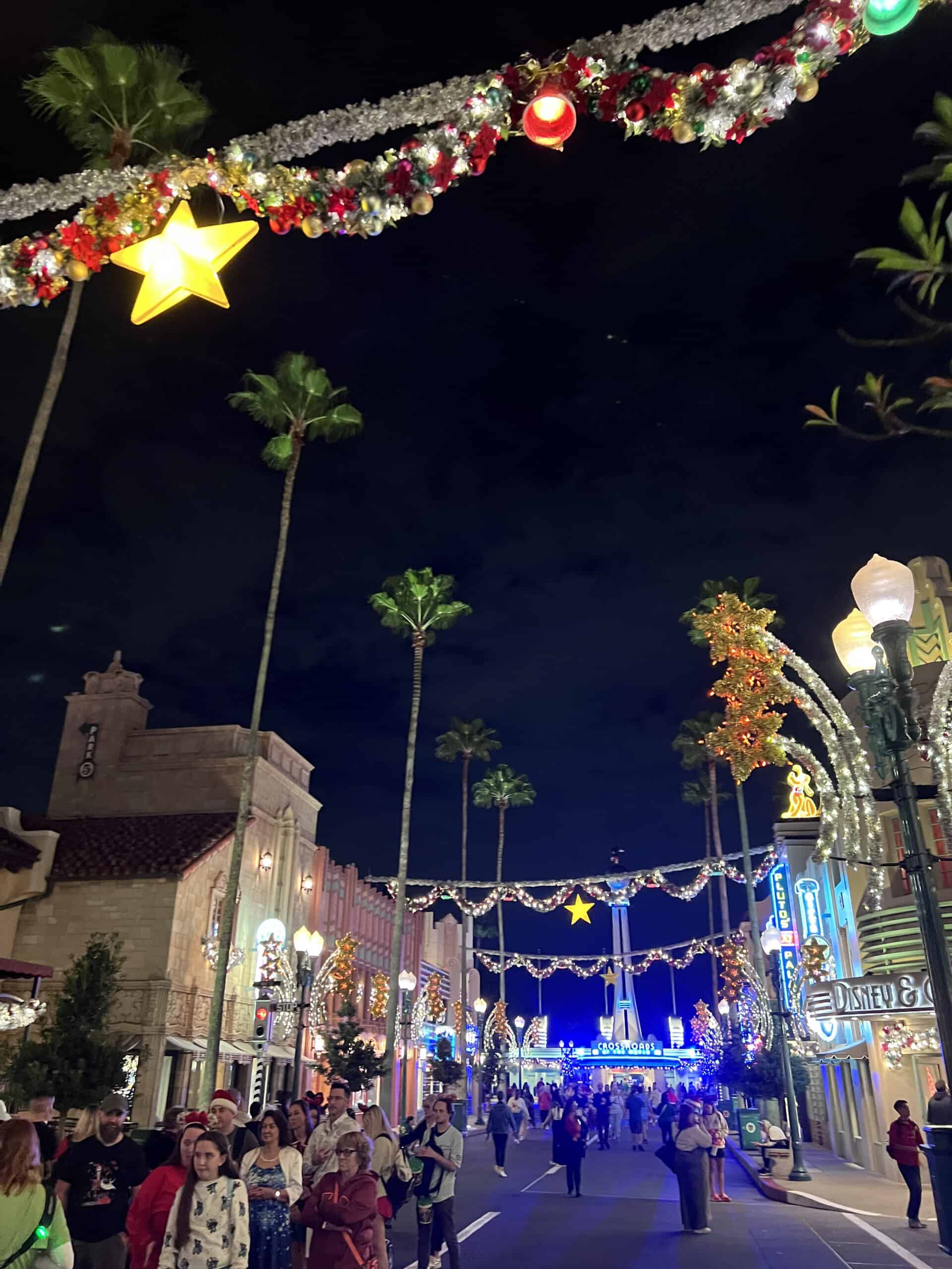 Atmosphere & Style: Think old-Hollywood glam meets Christmas sparkle. The décor, music and overall vibe make this feel more like a holiday gala than a theme park event. Don’t miss Sunset Season Greetings showing throughout the night on Sunset Boulevard. Dressing up for the evening definitely adds to the fun.