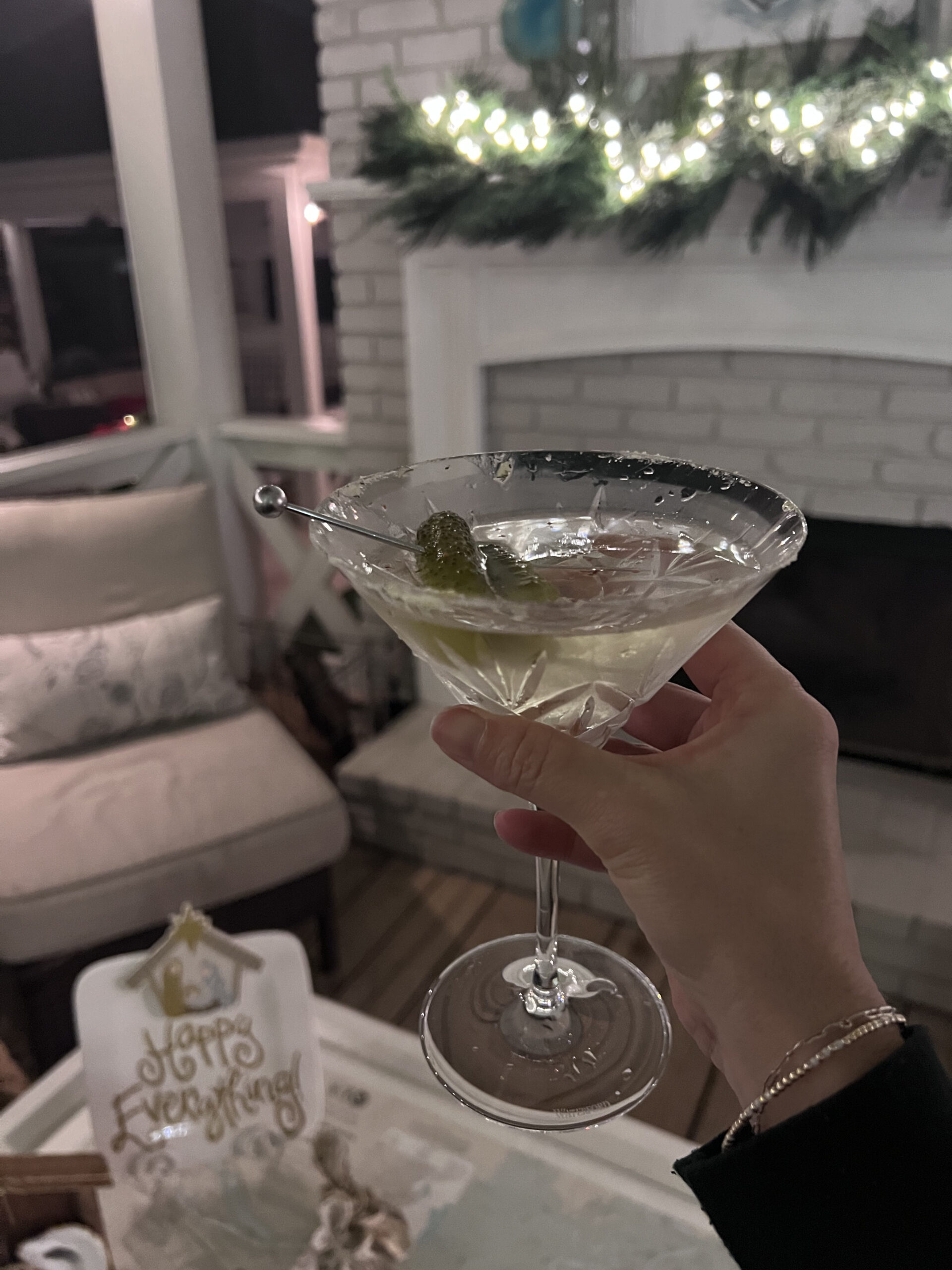 The weather the week after Christmas was absolutely lovely. Honey and I enjoyed cocktails on the porch at night and slow coffee mornings wrapped in blankets. I’m missing those days right about now! Pickle Martini Recipe Here