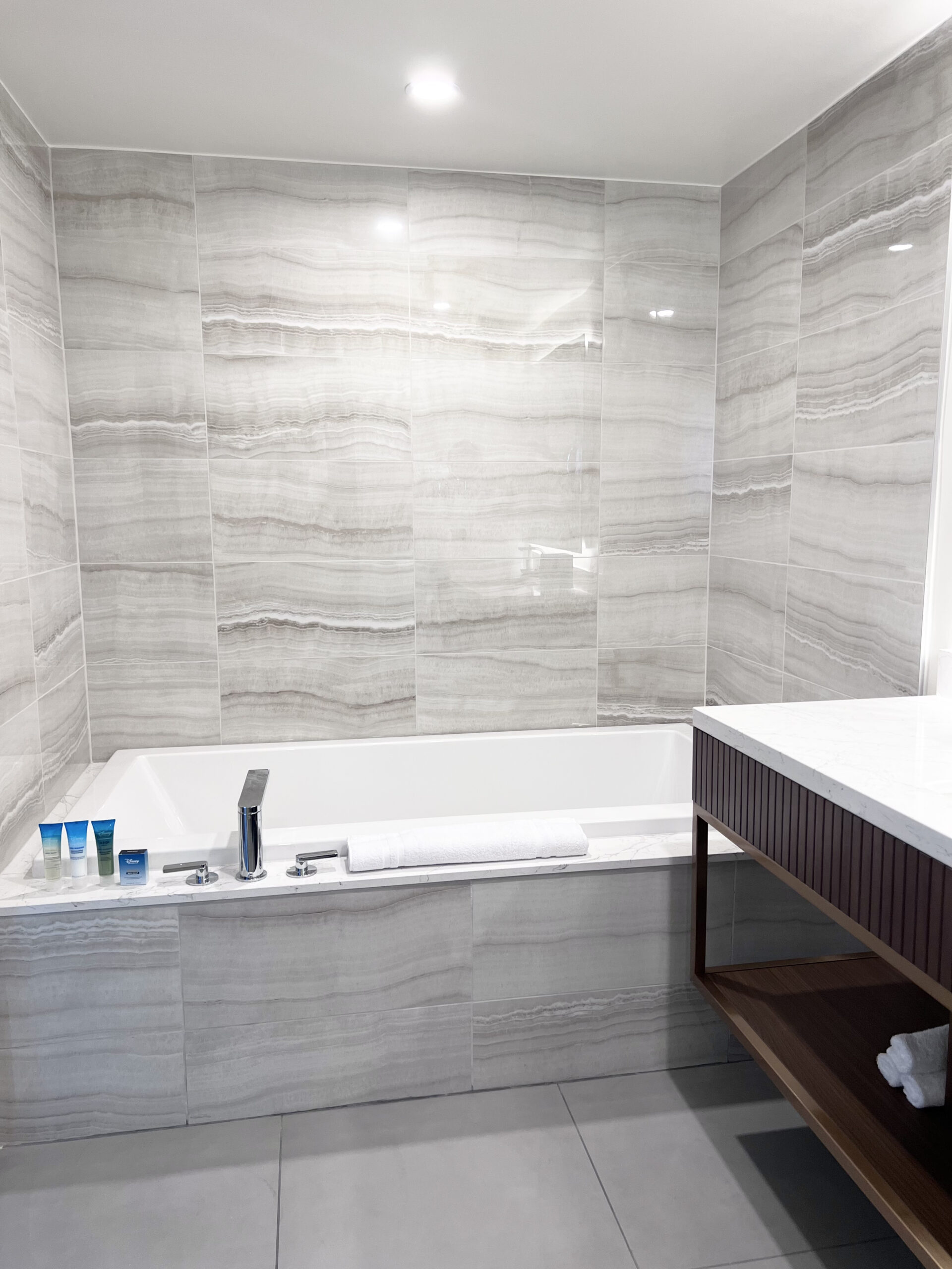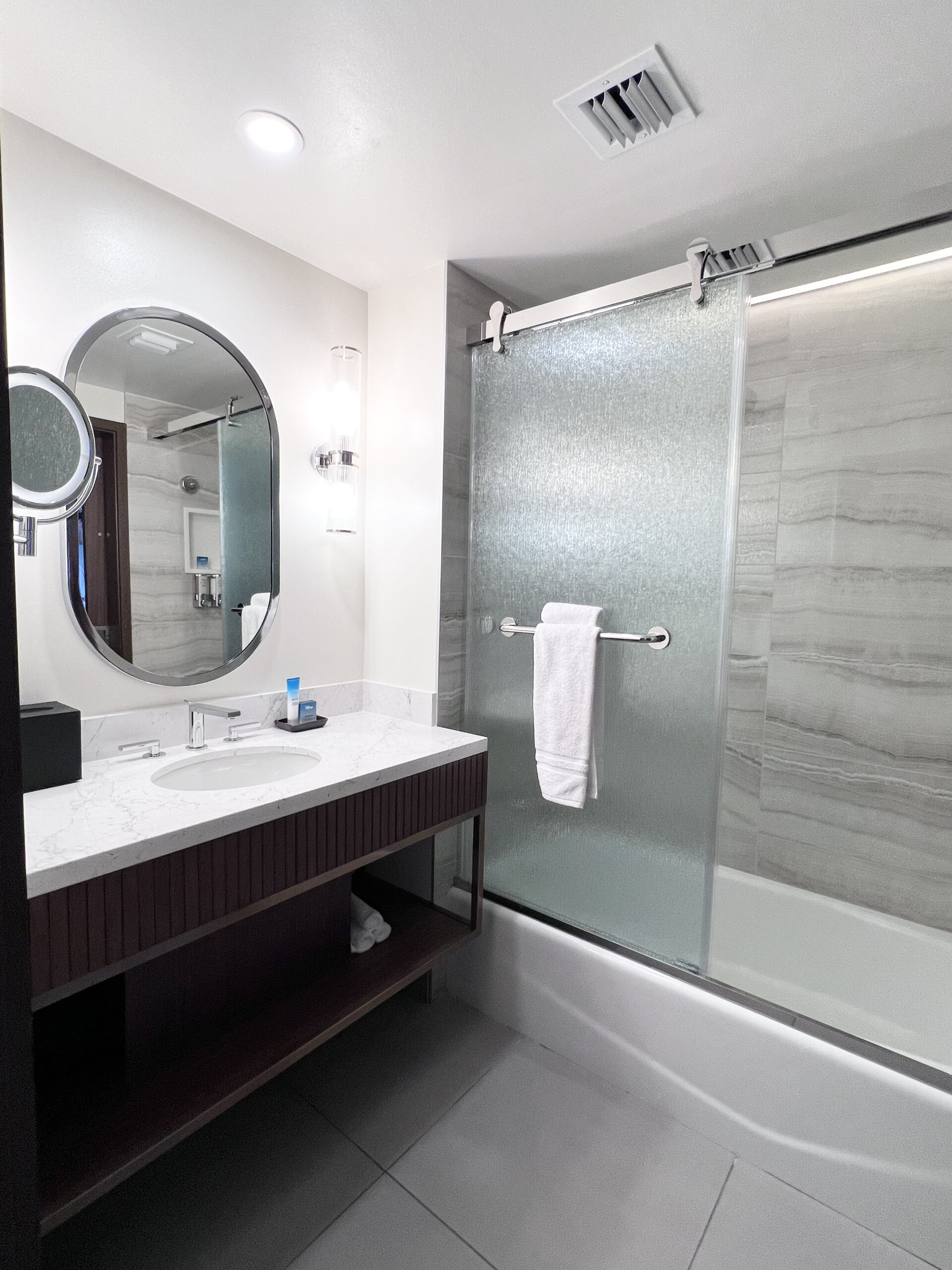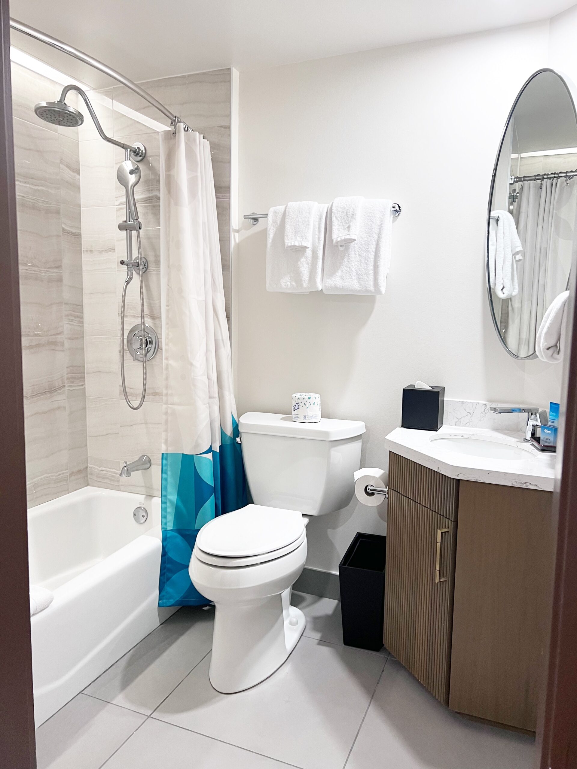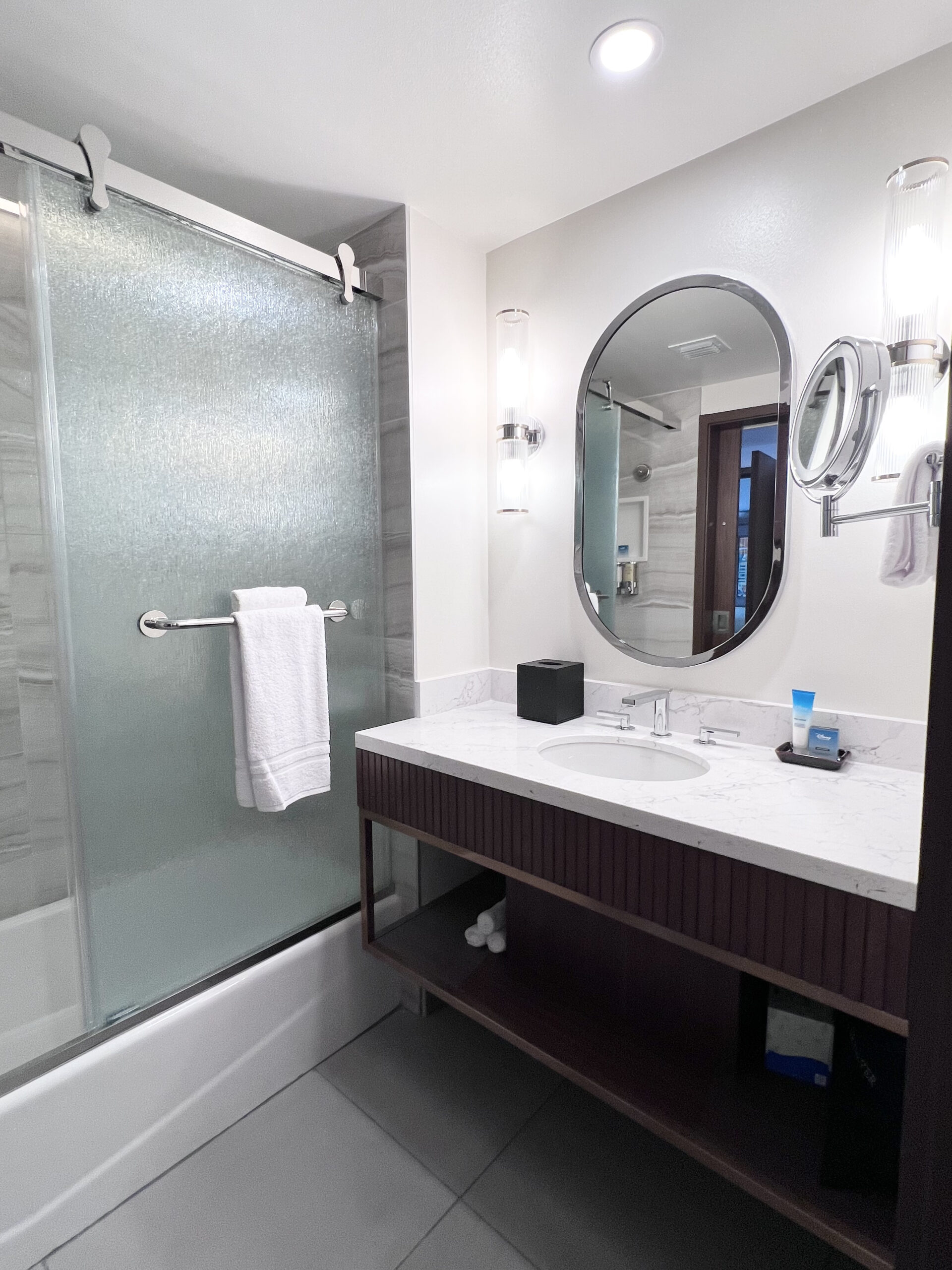 One thing I particularly love about the Bay Lake Tower One Bedroom Villas is the additional full second bathroom. It makes mornings and evenings much easier.