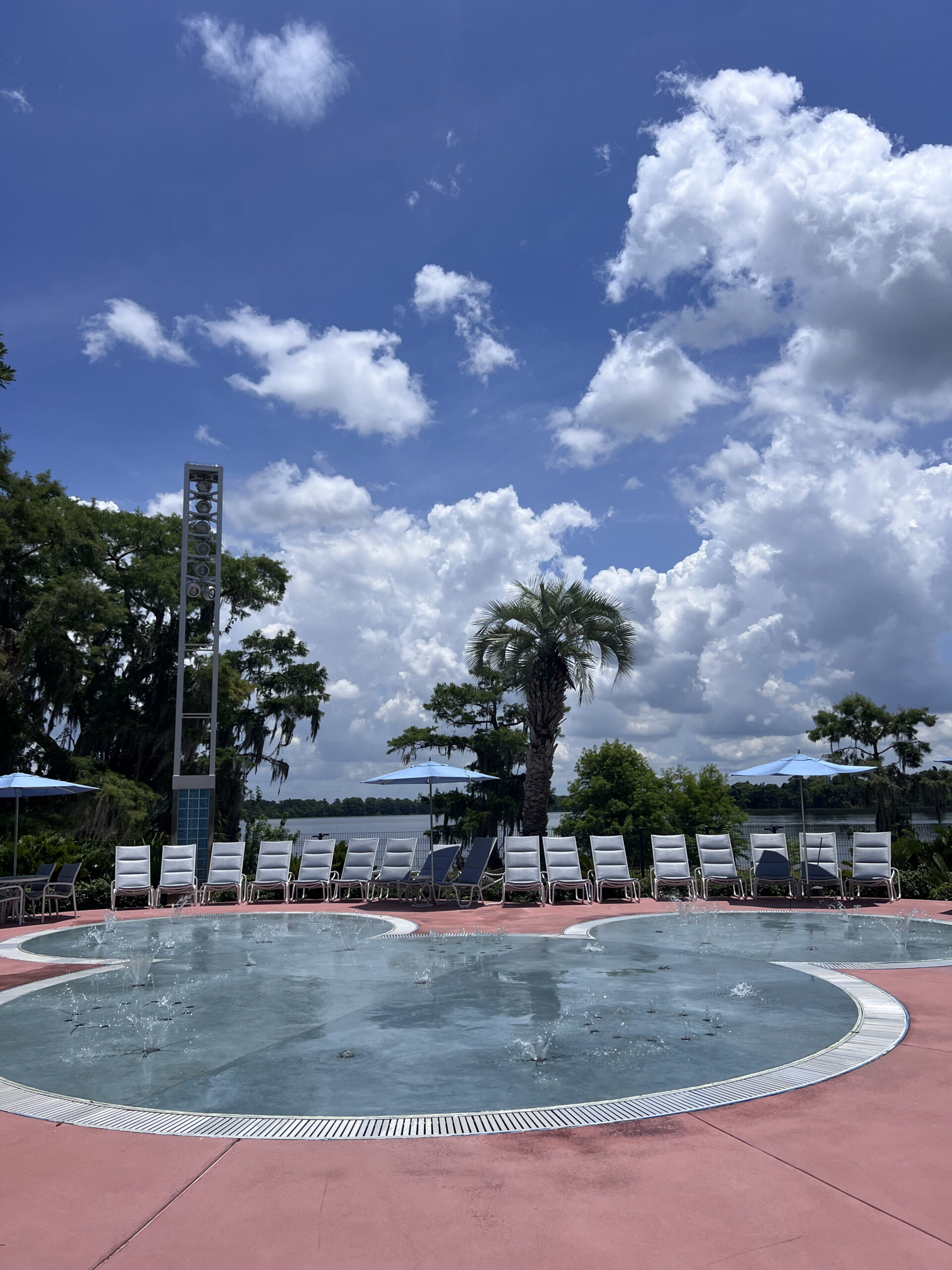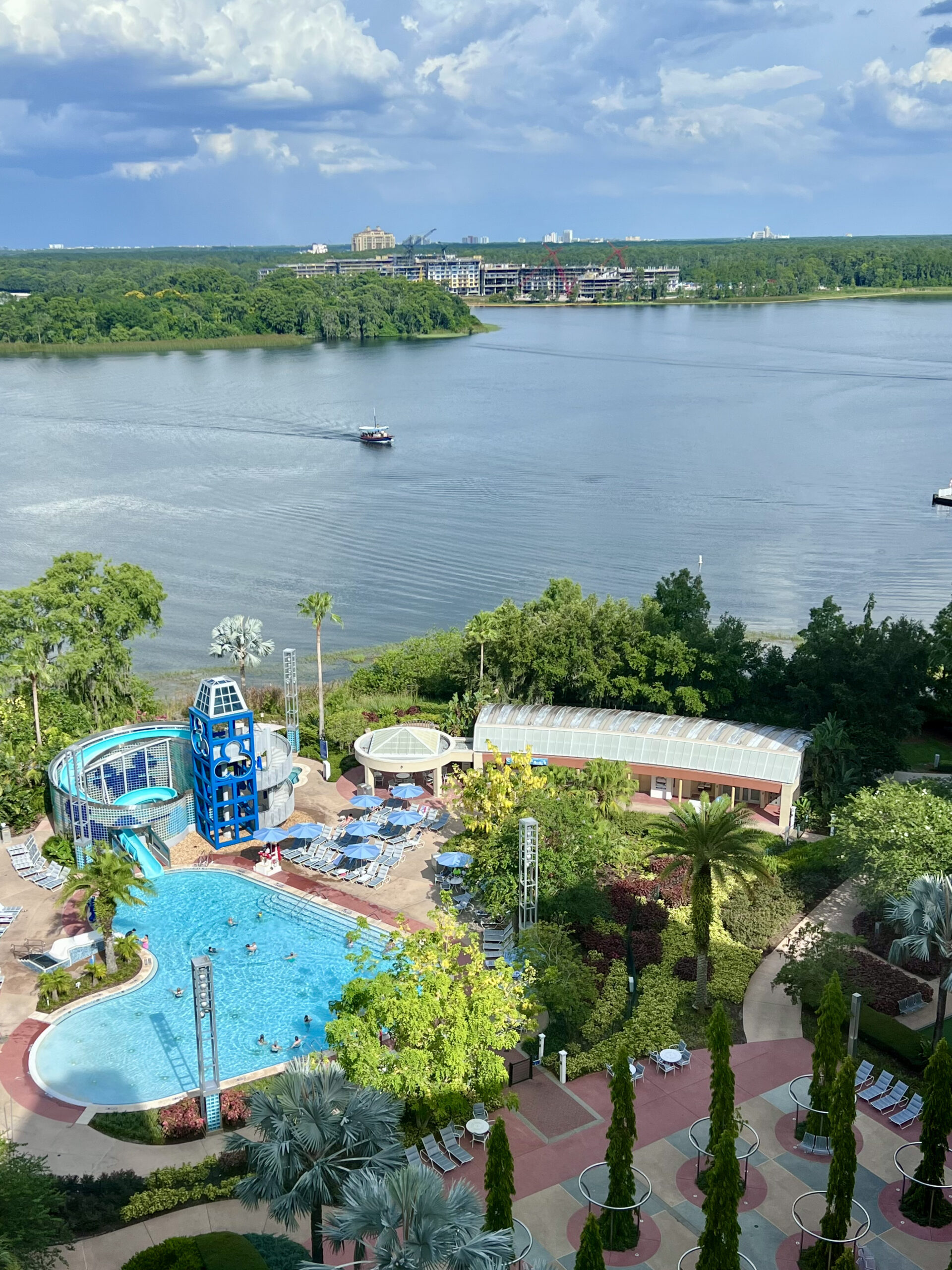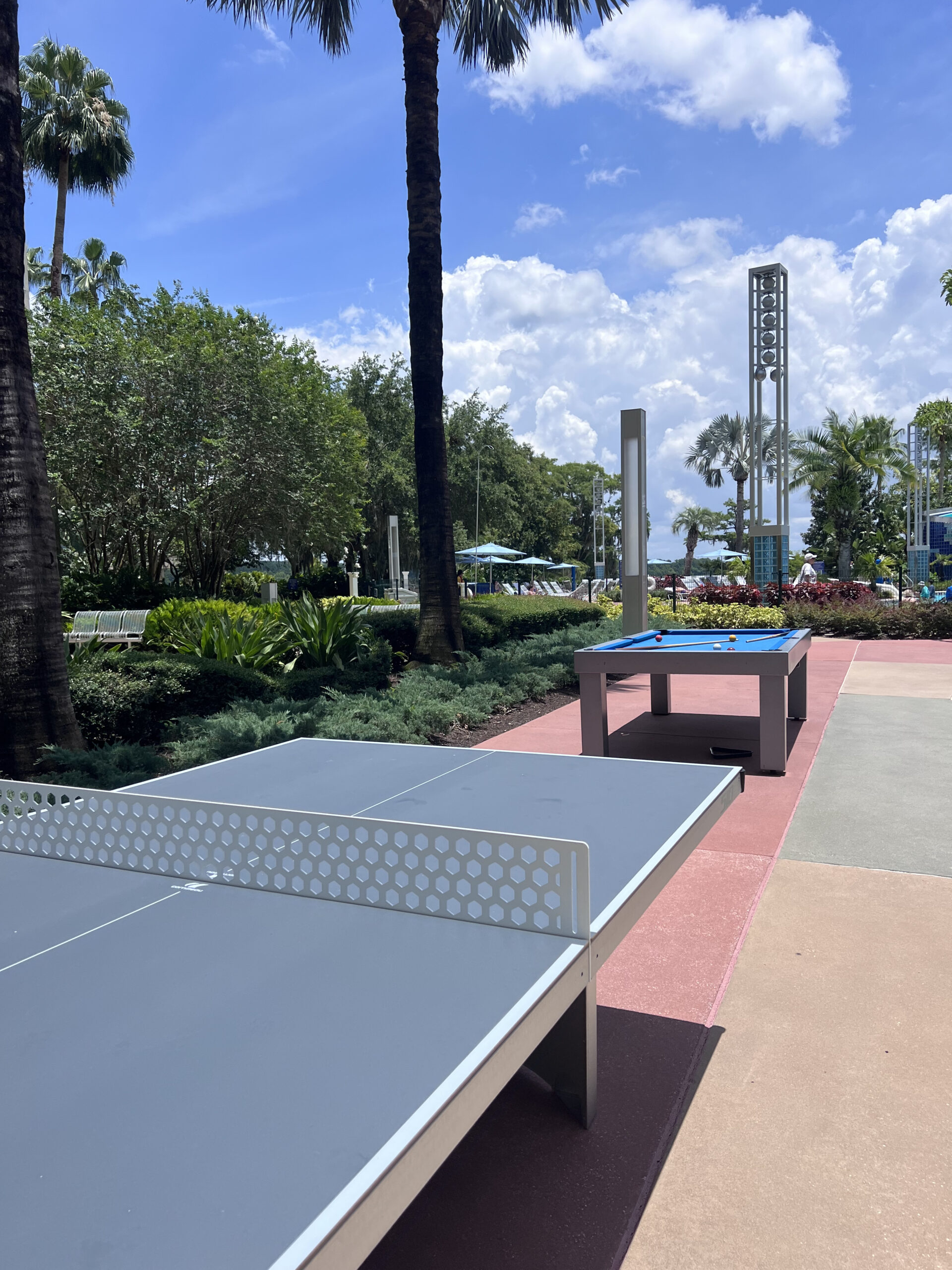 The marina offers boat rentals and fun excursions like fishing and parasailing. There are two pools, along with a splash area as well over on the Contemporary side. The Bay Lake Tower side has its own pool, and fun activities like giant chess, pool, bocce, ping pong and more!