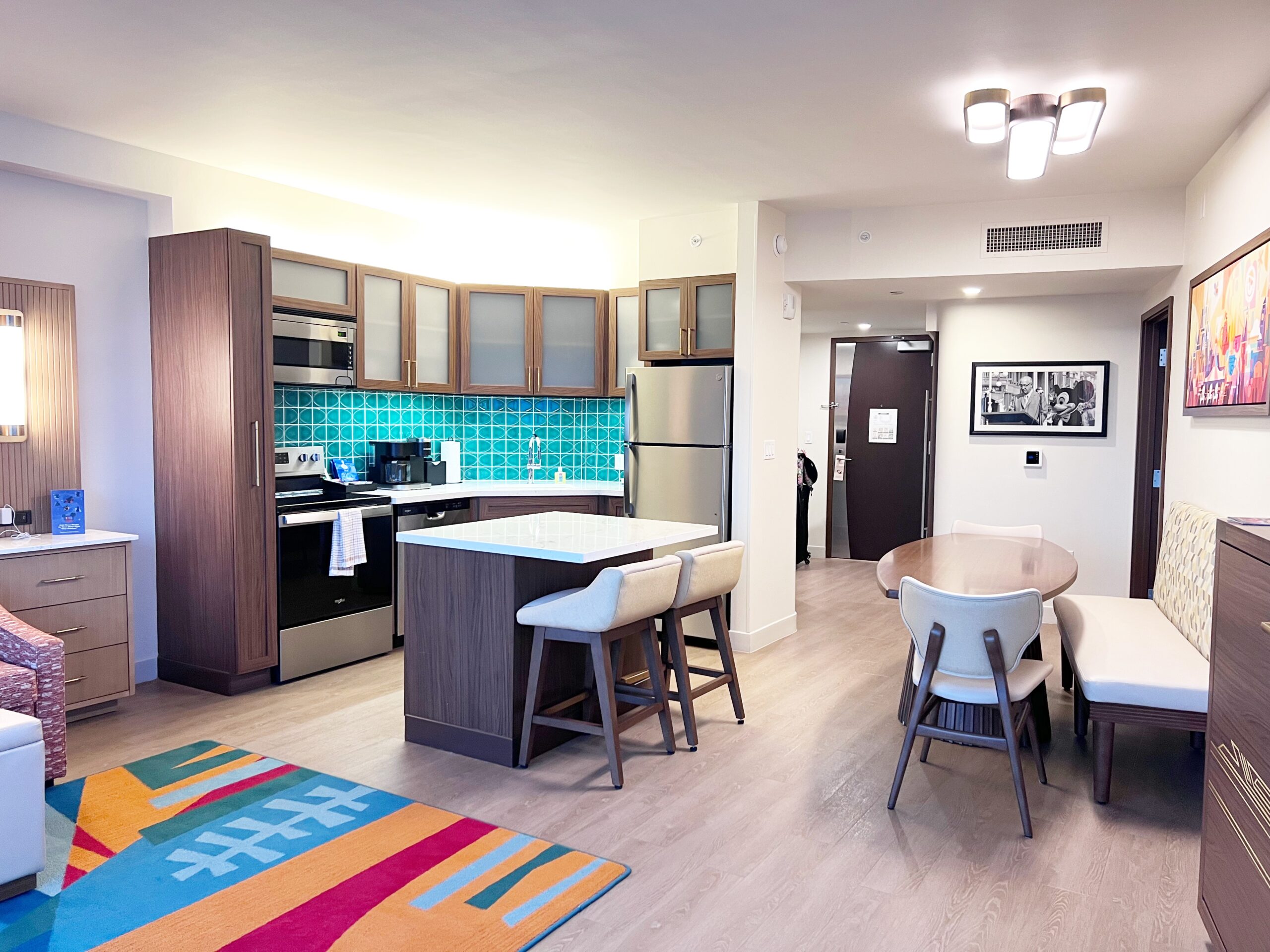 The One Bedroom Villa is the room type we book most often at Walt Disney World. The extra space makes such a difference, especially after long park days. You get a true bedroom with a king bed for the grownups, a sleeper sofa in the living area, and a full kitchen. We stayed in this room in September.