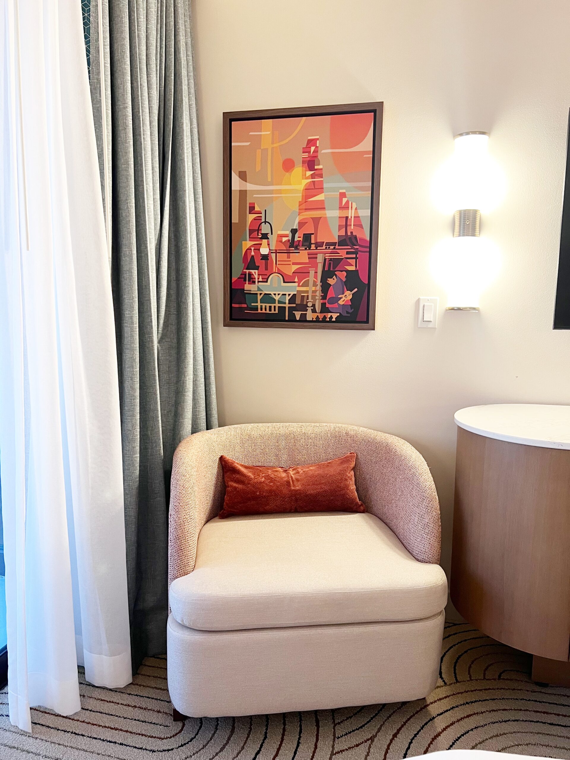 The renovated decor here is wonderful. It feels like a respectful nod to the resort’s original 1971 opening with modern updates layered in. You see Disney details, but in a sophisticated, intentional way.