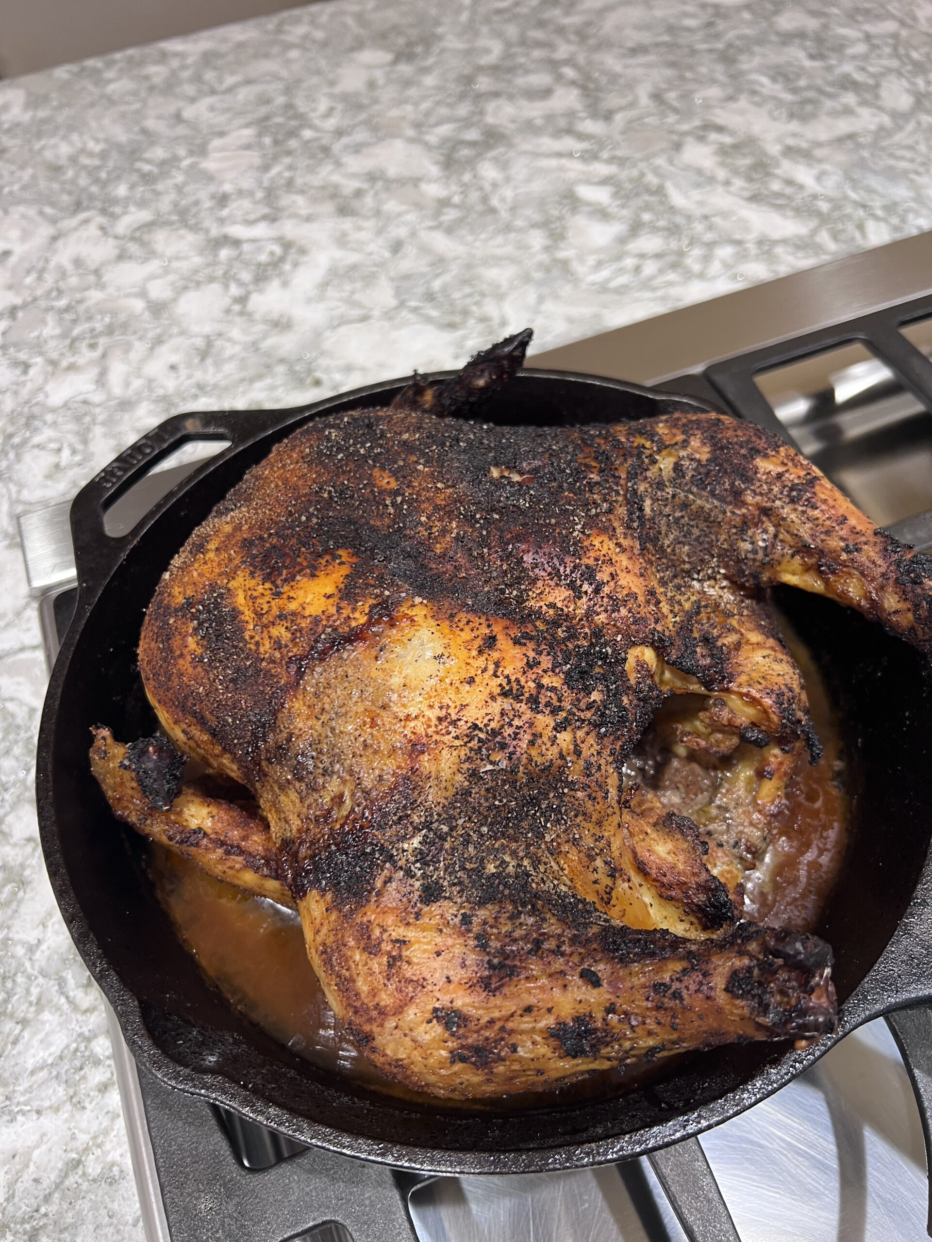 What immediately stood out to me about Ivy’s version is that it is cooked in a cast iron skillet. Something about that alone felt promising. The prep could not have been simpler. Drizzle the chicken with olive oil, coat it generously with her House Seasoning, and let the oven do the rest. No complicated steps, no fussy ingredients, and no hovering required. The result was a beautifully roasted chicken with crispy skin and juicy, flavorful meat. We loved it!