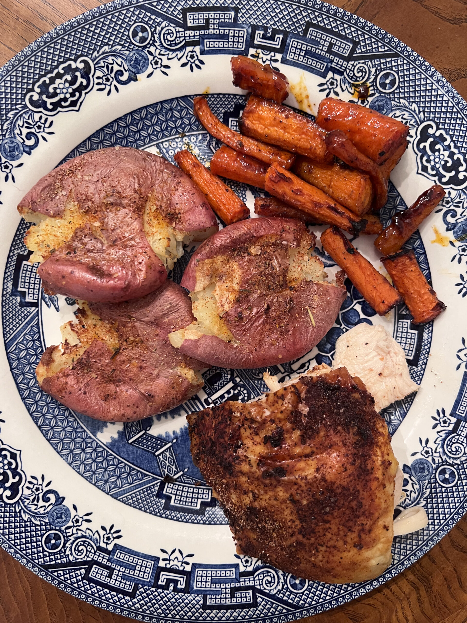 I served the chicken with honey carrots, which are always a crowd-pleaser, and Ivy’s Roasted Smashed Potatoes. Those were just as straightforward and delicious as the chicken. A few simple ingredients, minimal prep, and a big payoff.