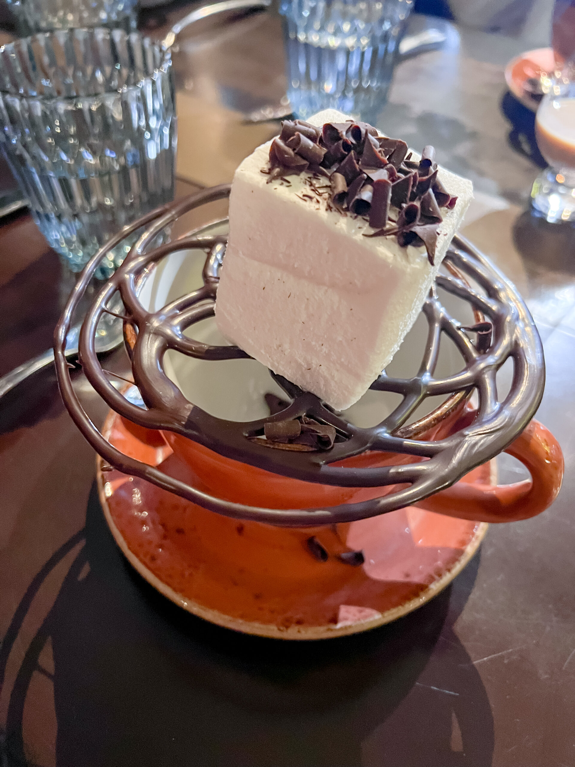 It is ridiculous in the best possible way with a giant house-made marshmallow, a chocolate lattice, and rich hot chocolate poured over the top. It is completely over the top and entirely worth it. Whit is now lobbying for homemade marshmallows at our house, so I suspect that will become a project sooner rather than later.