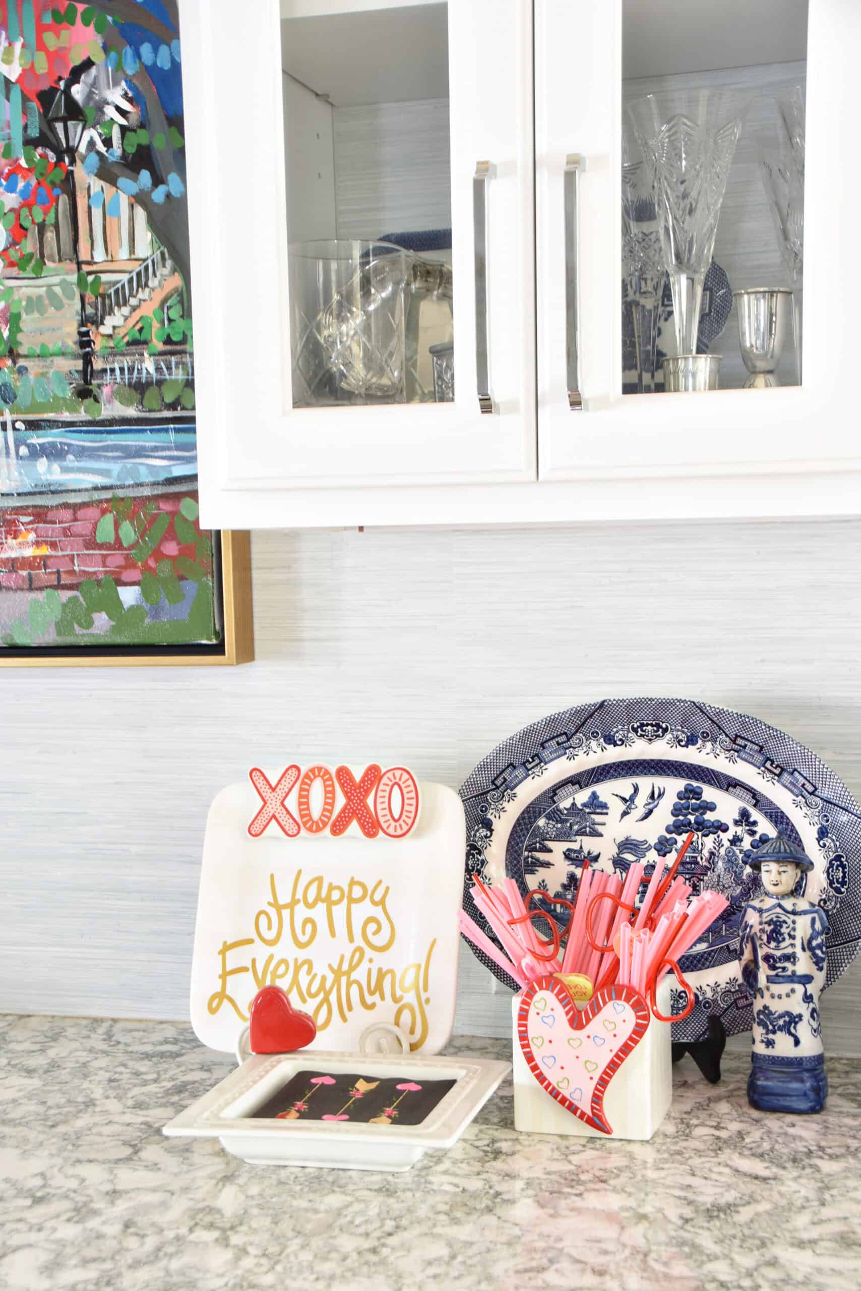 I bought the heart straws two years ago. They came in a huge set and I still have plenty left. You’ll also spot more Happy Everything! pieces here, along with my Nora Fleming napkin holder.