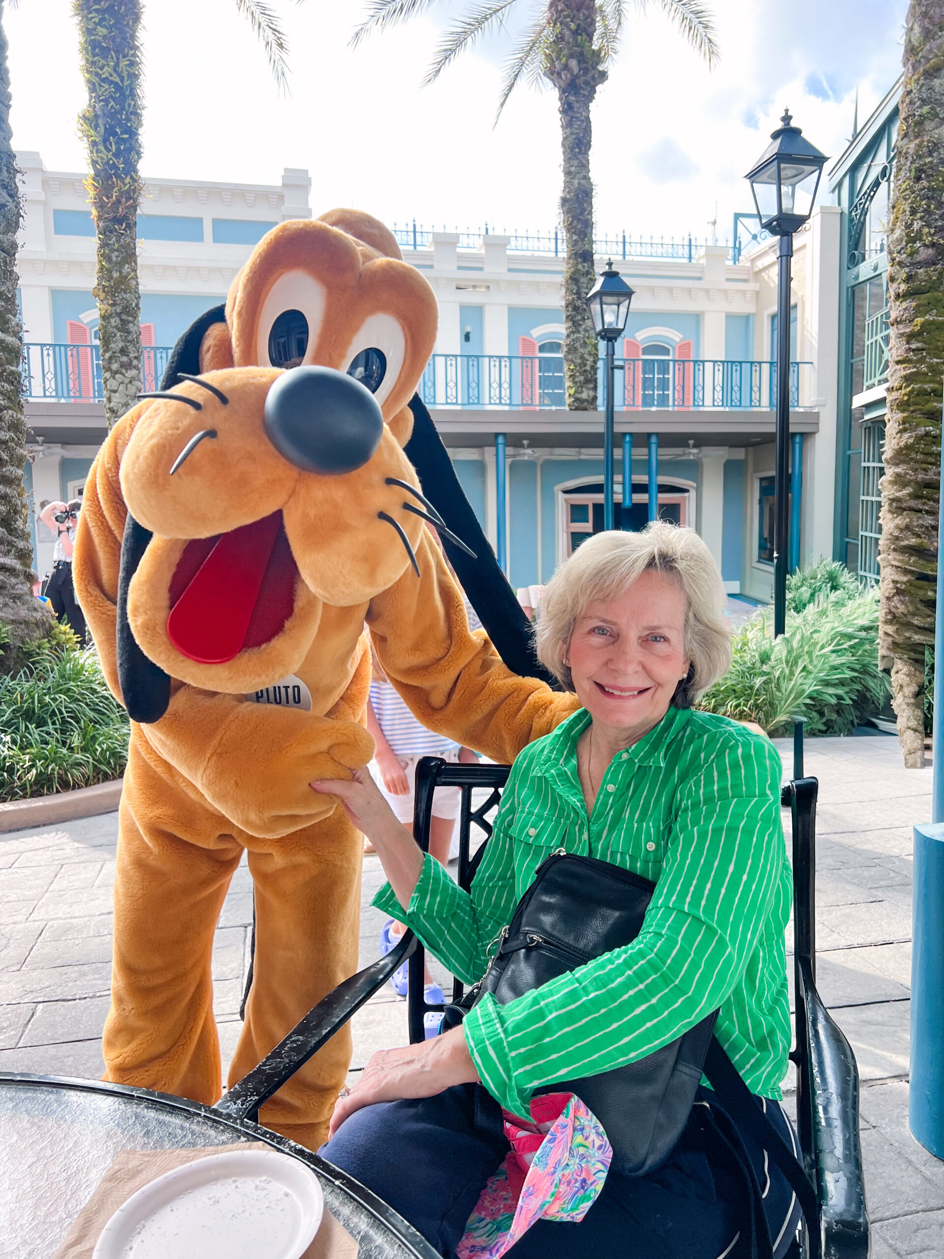 We sat outside in the courtyard with beignets and coffee, easing into the day, when Pluto made a surprise appearance. It was one of those little unexpected Disney moments that never gets old.