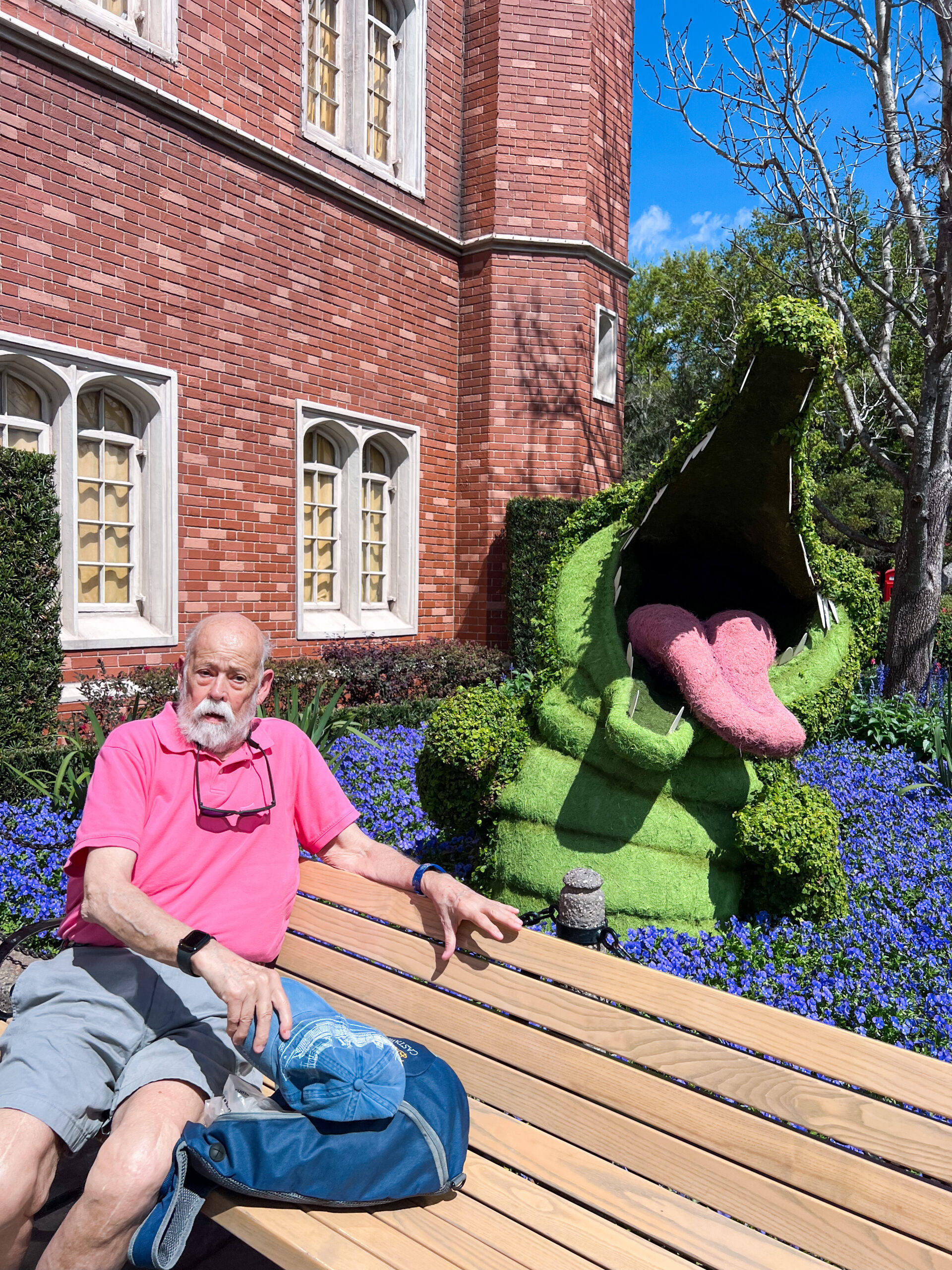 We strolled through the shops, admired all the Flower & Garden topiaries, people watched, and stopped for photos whenever something caught our eye. It felt relaxed and easy and just right for our first full day together. (Daddy-O, look behind you!)