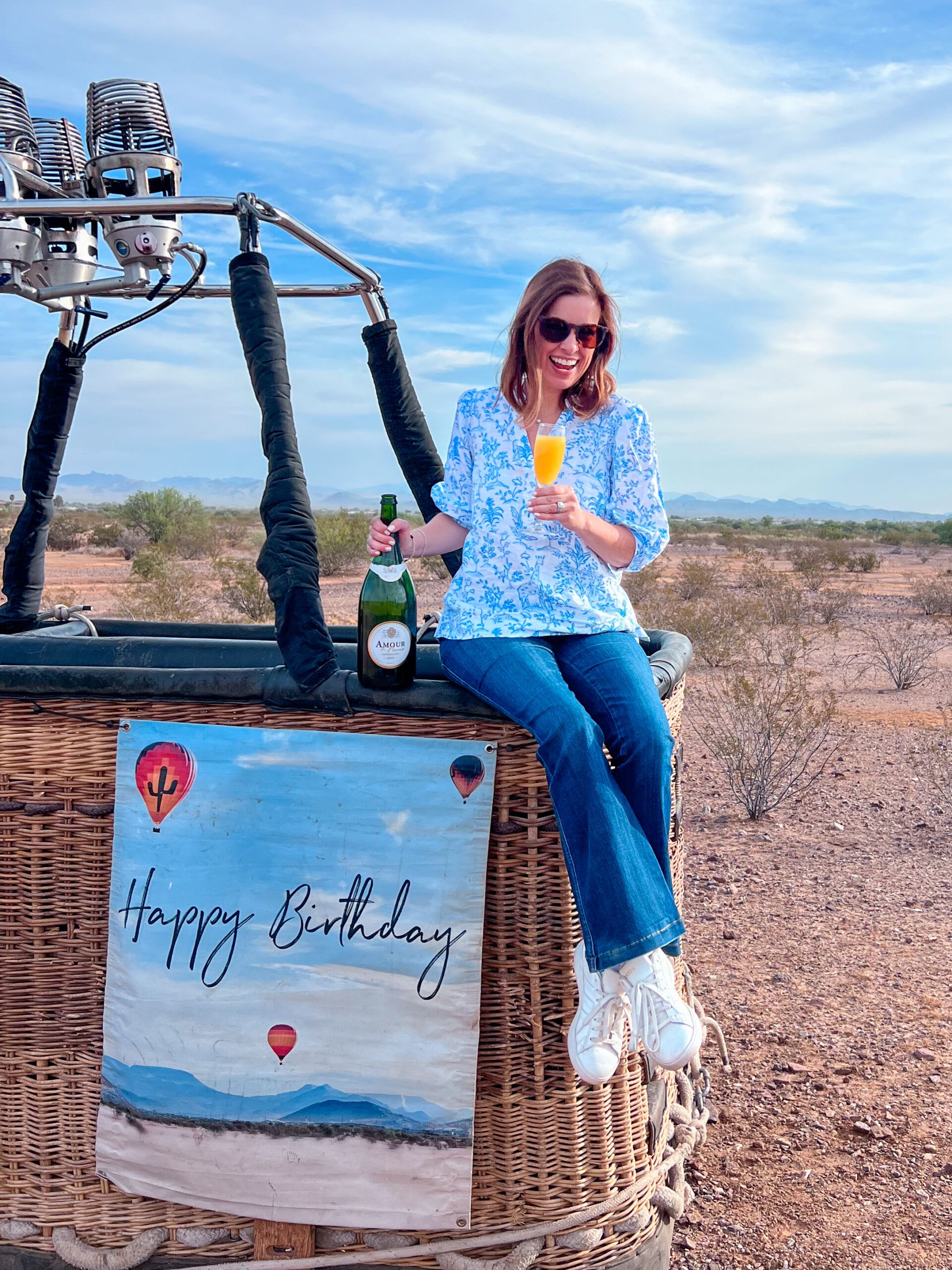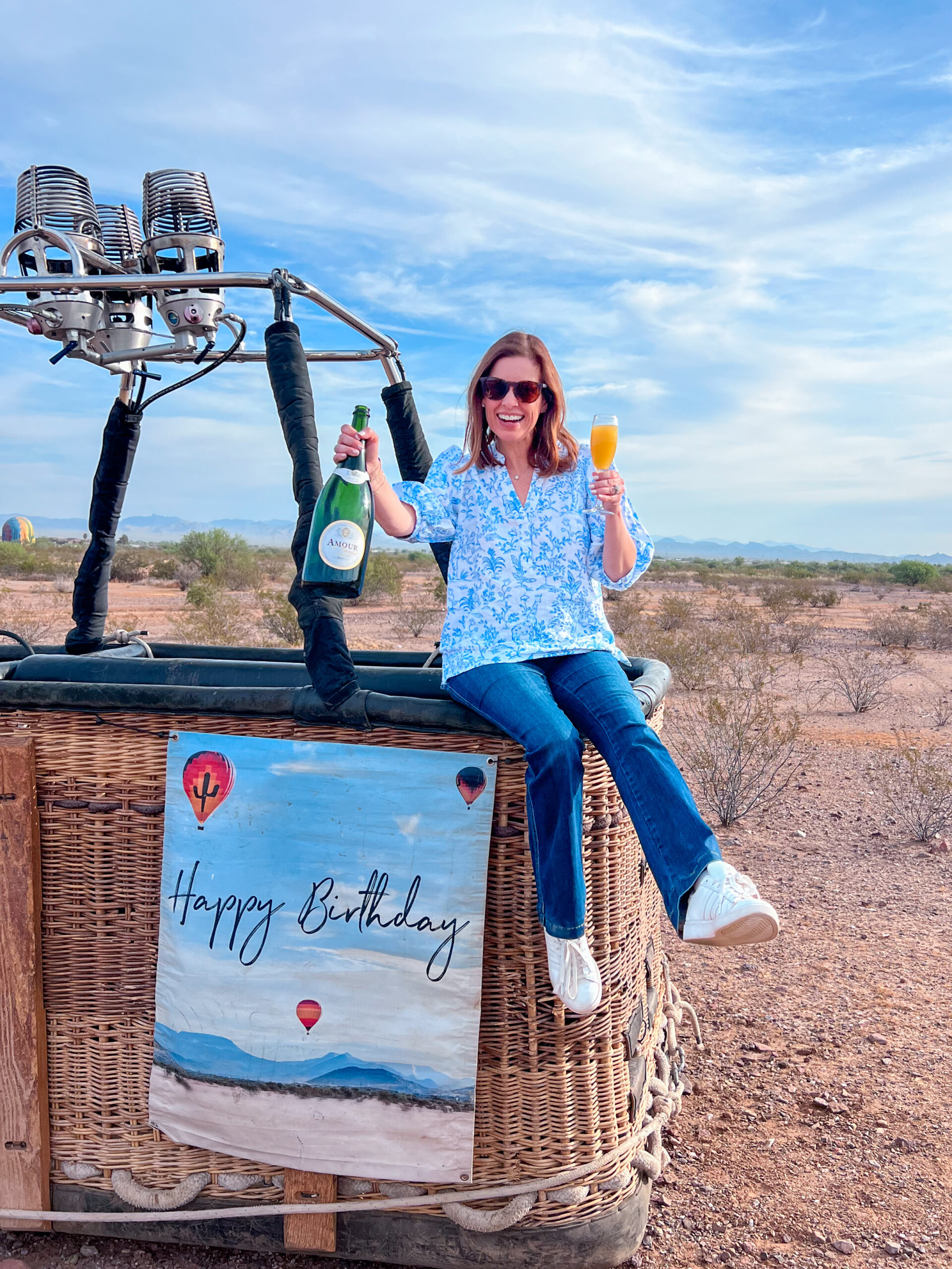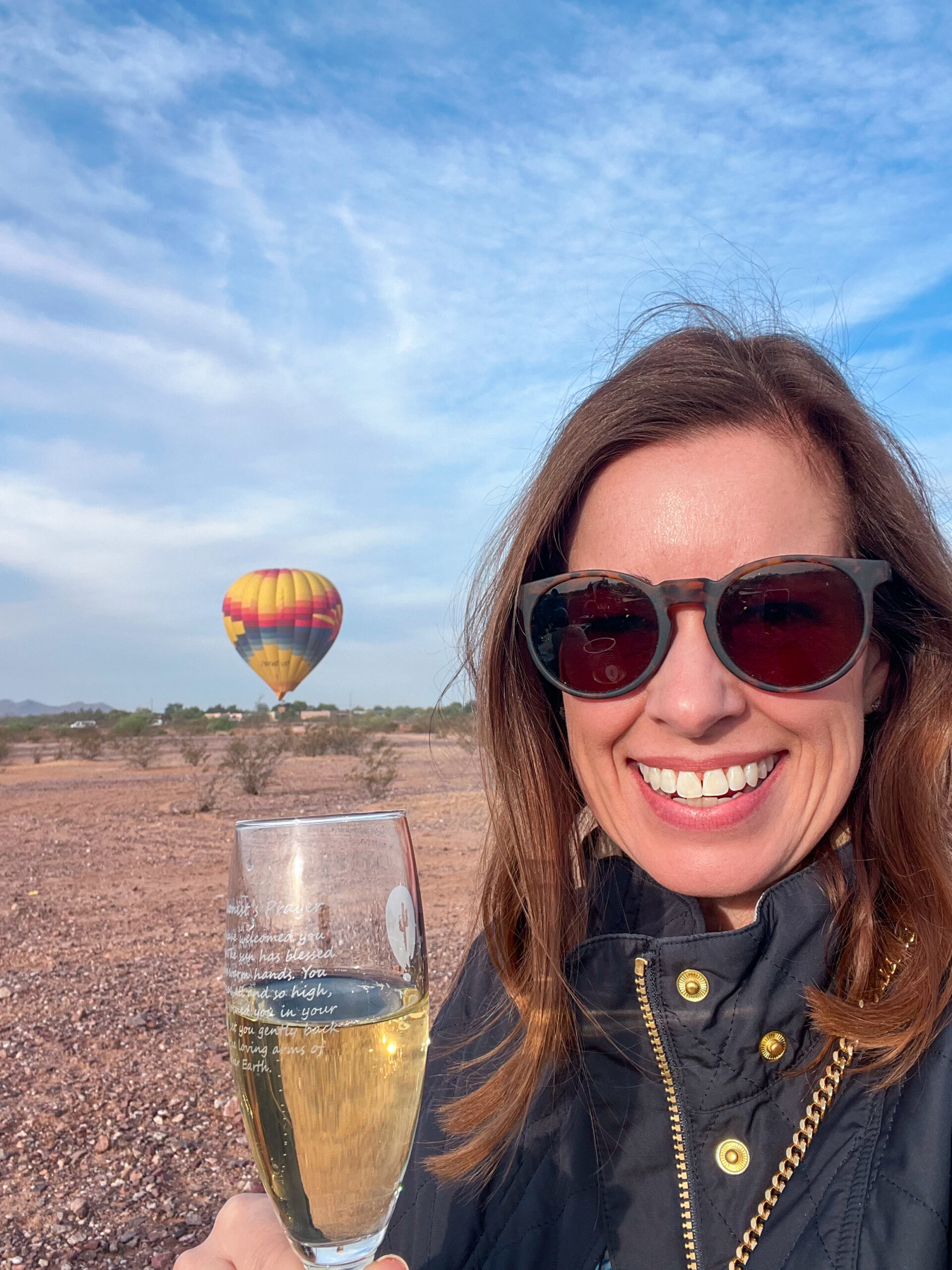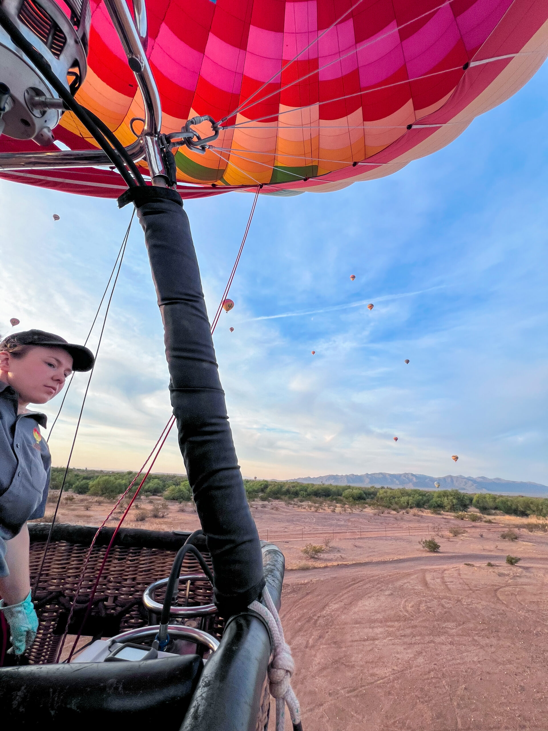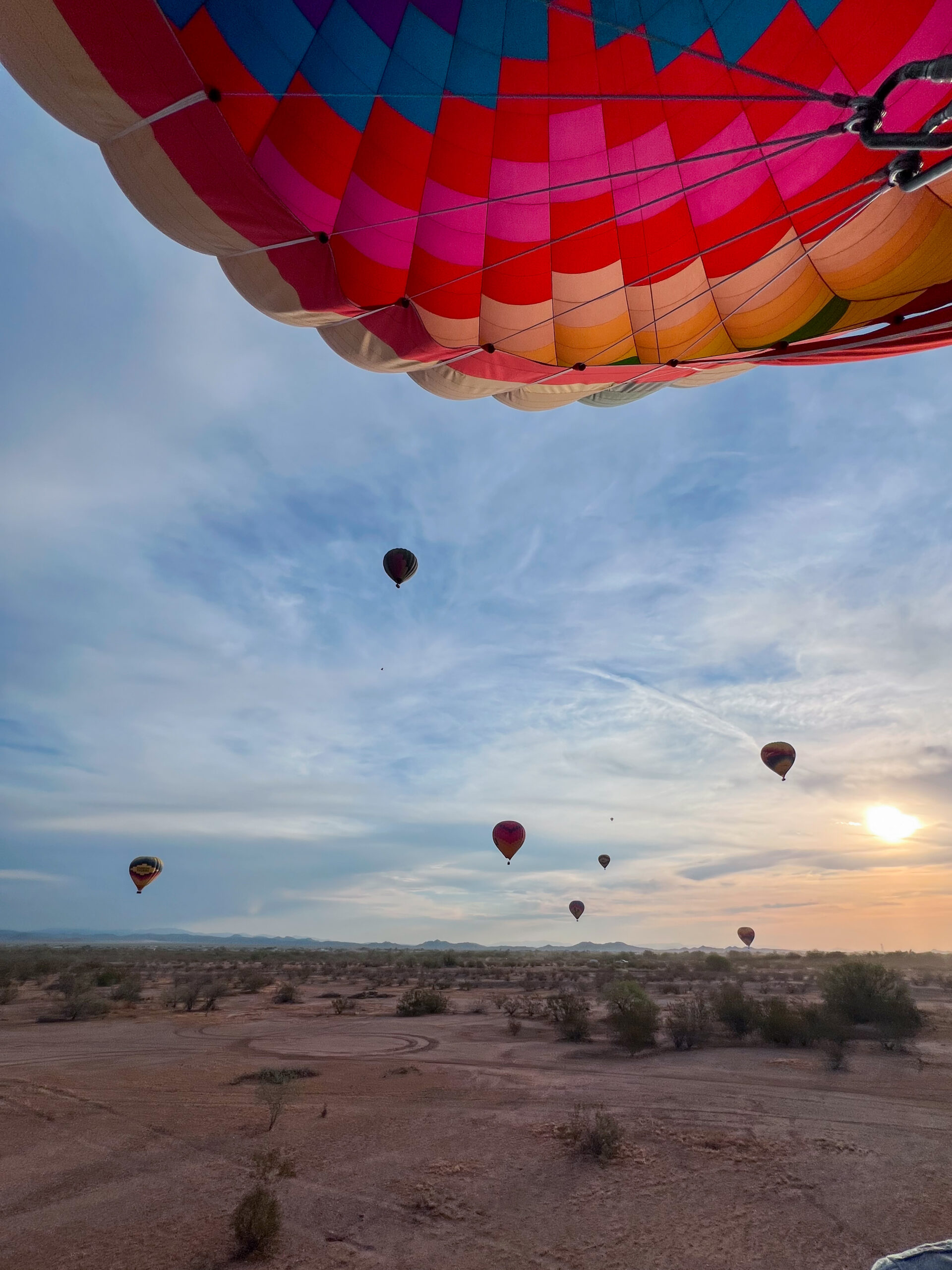 Soon enough, we were soaring 5,000 feet above Scottsdale. It was incredibly smooth and not at all scary. The motion felt almost weightless, without a single bump or jolt. Gliding above the desert as the sun began to rise, with the sky dotted with balloons in every direction… it was simply breathtaking. Peaceful, surreal and one of those moments where the world goes still as you take it all in. Our captain was so kind and knowledgeable, sharing stories and insight about her craft throughout the flight.