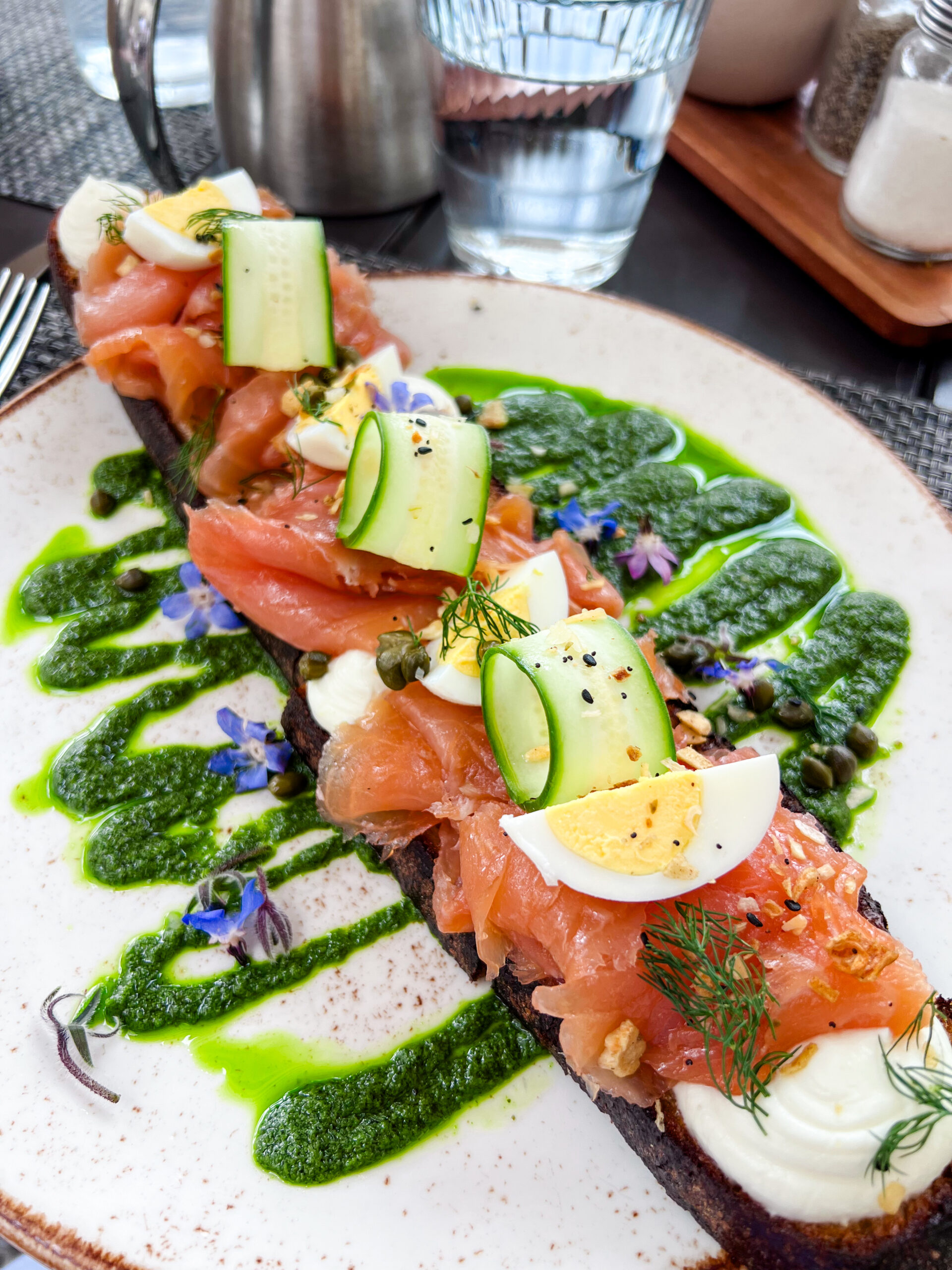 Feeling like I’d already accomplished enough to call it a day, I sat down on the patio at Ironwood for breakfast number two… a party of one… with a full pot of coffee (very necessary after that early wake-up) and the most beautiful salmon toast. Almost too pretty to eat.