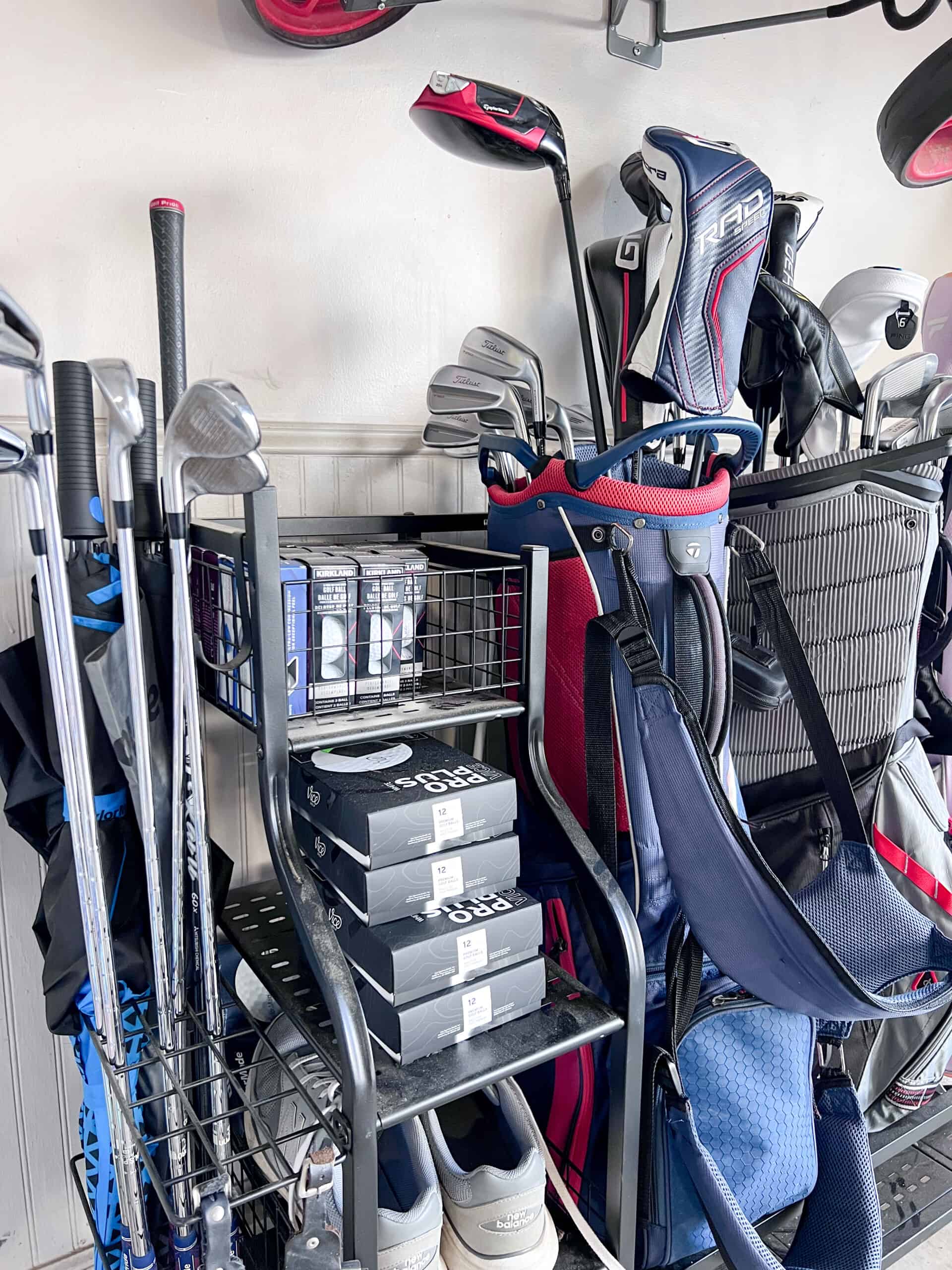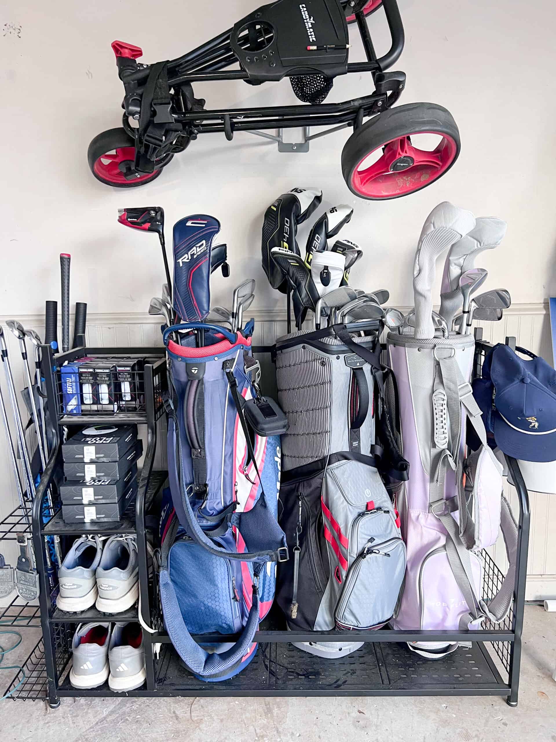 Over a year ago, we added this Golf Garage Organizer, and I can confidently say it has been one of the most practical, actually-used additions we’ve made. With two boys and a husband who all play, golf gear had a way of ending up everywhere. Bags leaning, shoes scattered, clubs tucked into corners. It worked… until it didn’t.