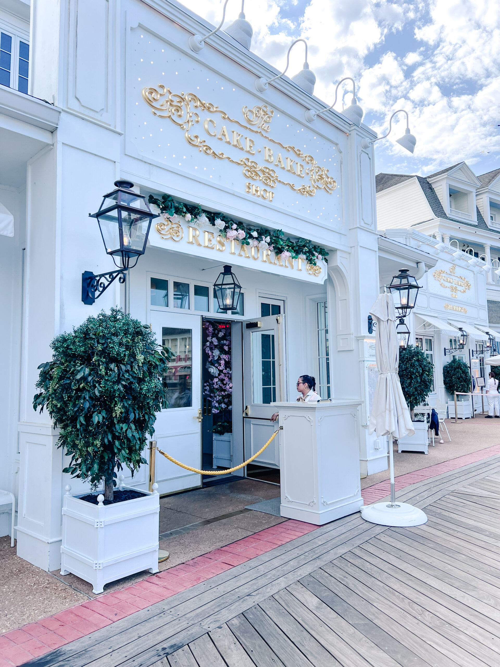 One thing I especially love about The Cake Bake Shop is that you don’t have to commit to a full meal to enjoy it. There is a bakery walk-up option where you can stop in and grab one of their stunning cakes, pastries or a coffee to go. It’s perfect if you’re strolling the BoardWalk, heading to EPCOT, or just want a little taste of the experience without a full reservation. And truly, the desserts are works of art. Even just popping in feels like a moment.